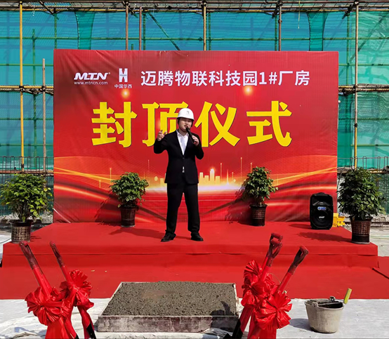 2021年10月29日上午,邁騰物聯科技工業園1#廠房封頂儀式隆重舉行。