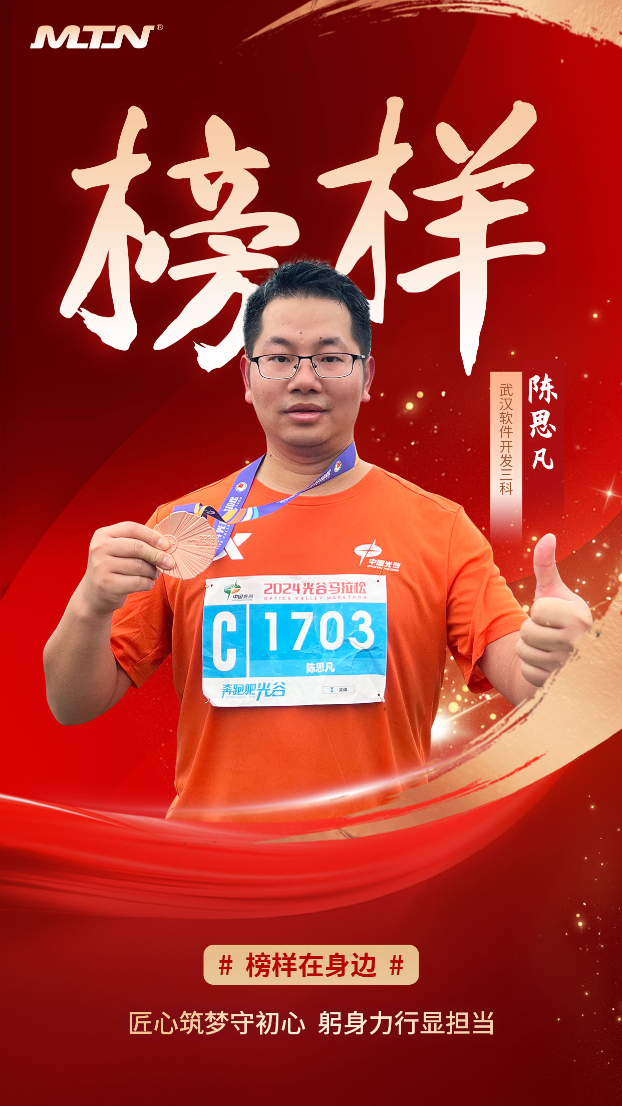 希望邁騰全體同仁以陳思凡為榜樣,銳意進取、勇于創新,敢于突破,在各自崗位上發光發熱,以實際行動為邁騰的發展貢獻力量,共同書寫邁騰更加輝煌的新篇章!