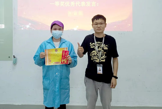 頒獎結束,獲獎代表對提案改善工作經驗分享,他們表示感謝公司提供展示才華、展示技能的平臺,在日常工作中,從身邊的小事入手,從身邊的小改善開始行動,讓員工發揮各自領域的優勢,聚沙成塔,擰股成繩,持續在各自崗位發光發熱。