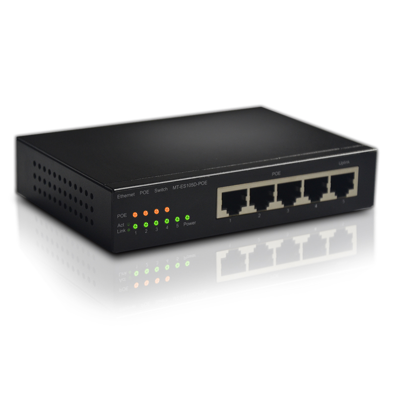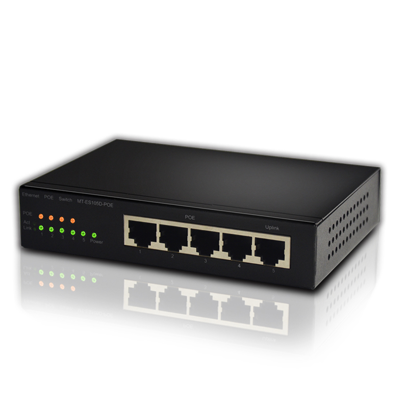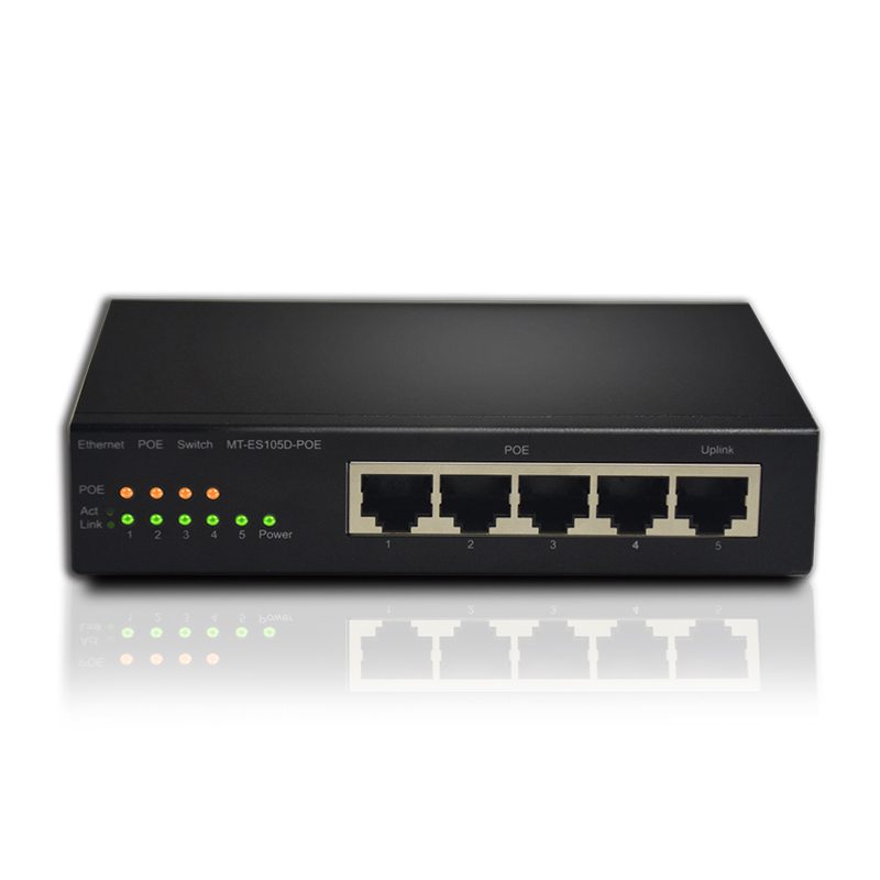 MT-ES105D-POE桌面交換機是一款全新設計的5口非網管型POE交換機,提供1個獨立的uplink口,且1~4口支持IEEE802.3AF/AT標準,適用于監控工程和網絡工程,可以為無線AP、IP攝像機等設備供電,即插即用,提供了低費用和高性能的網絡解決方案。